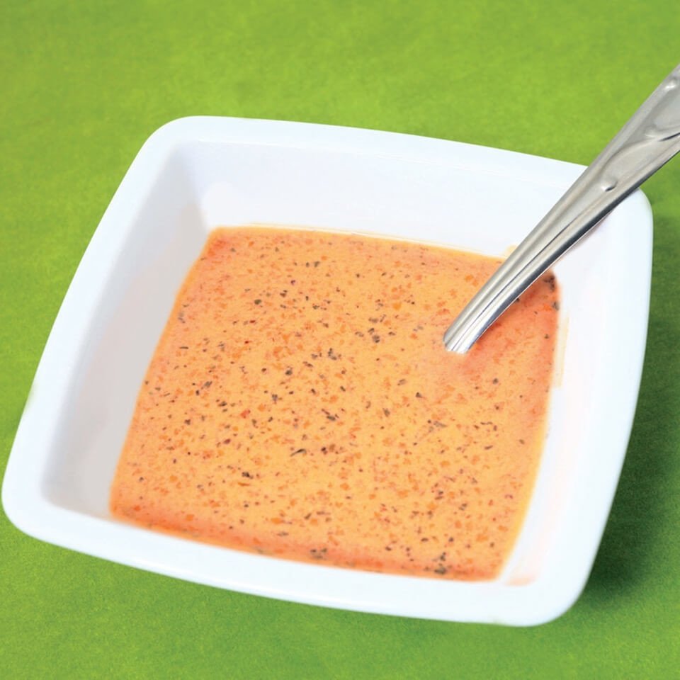 Paradajkovú proteínovú polievku s bazalkou